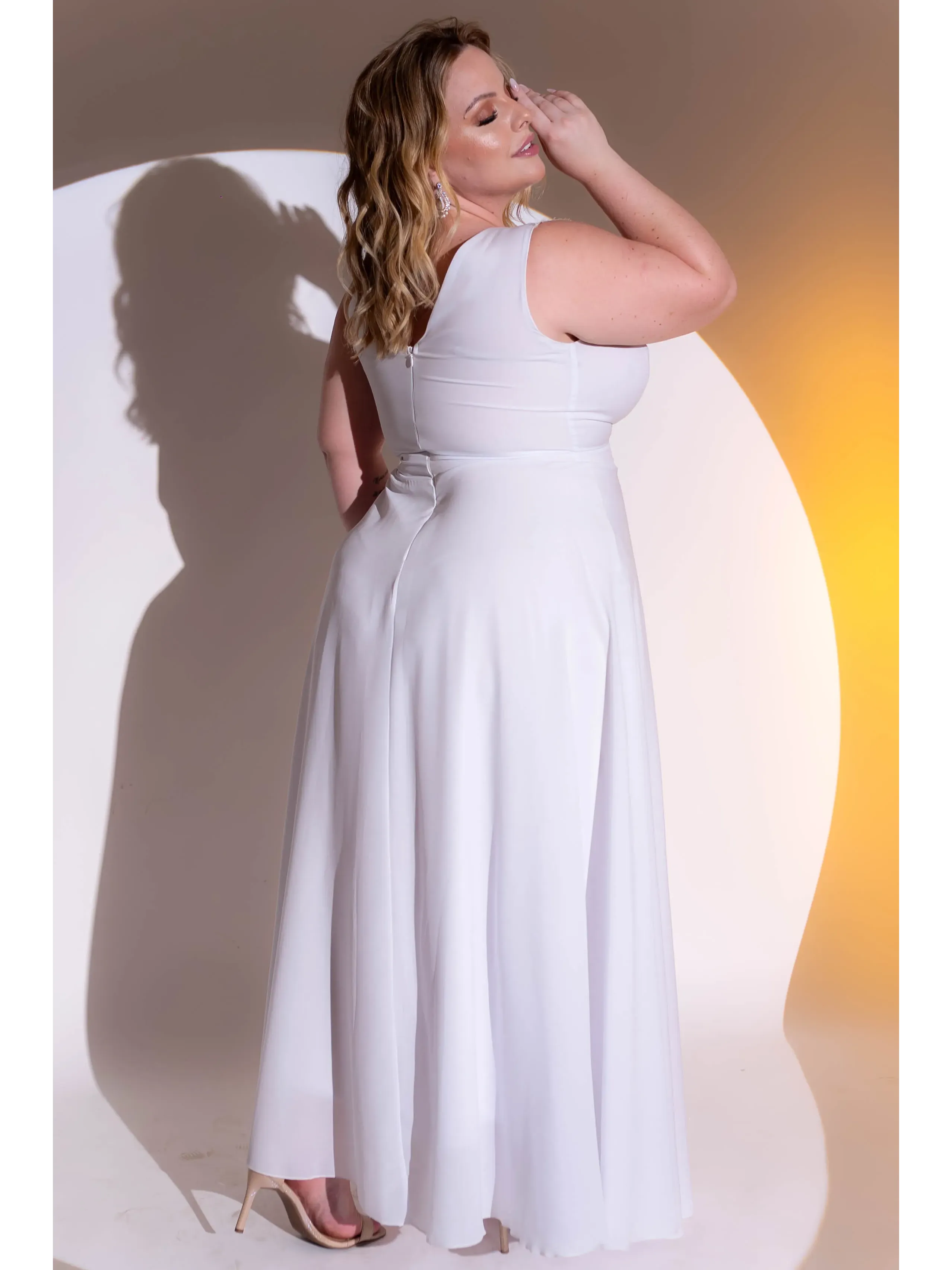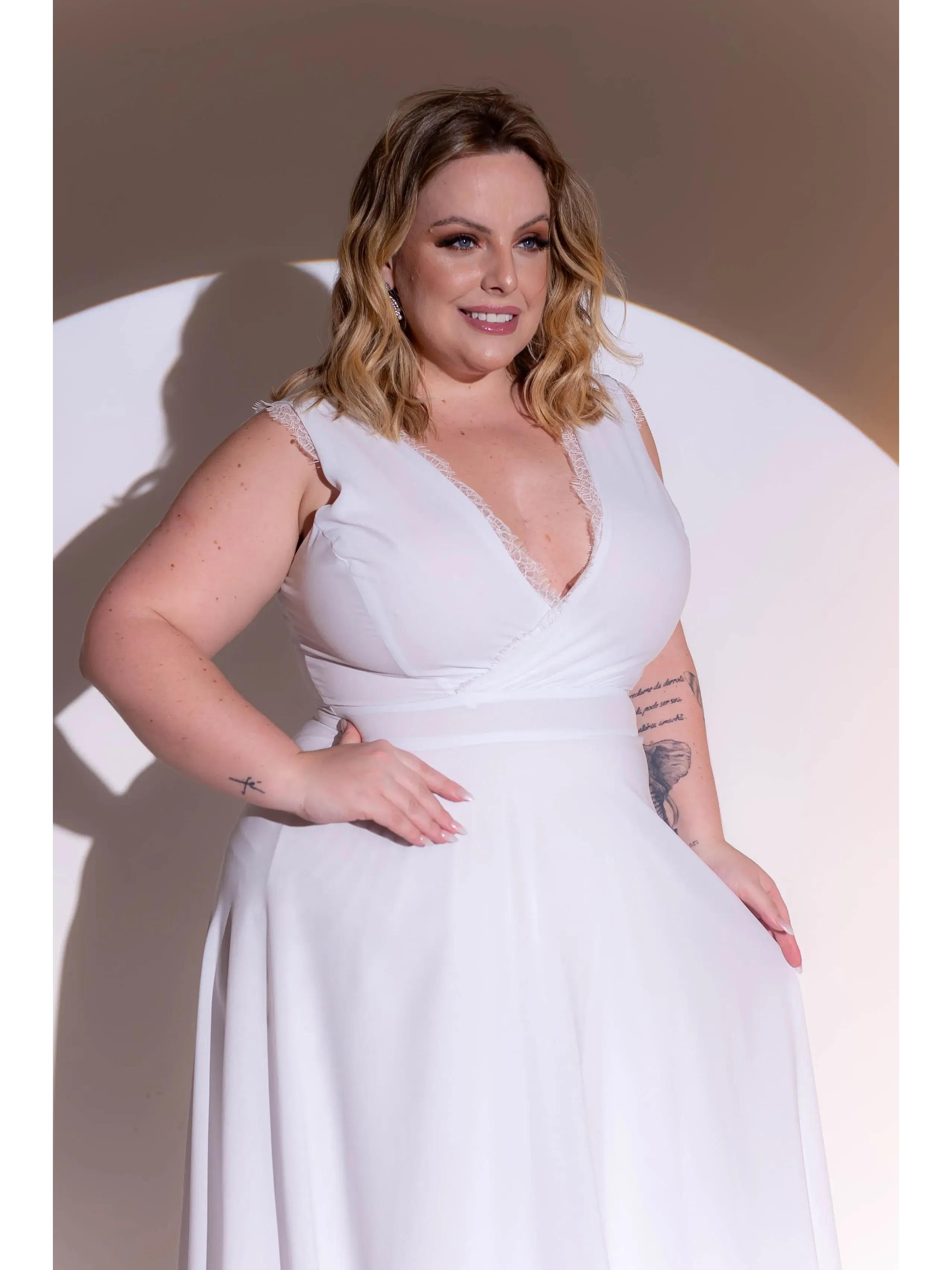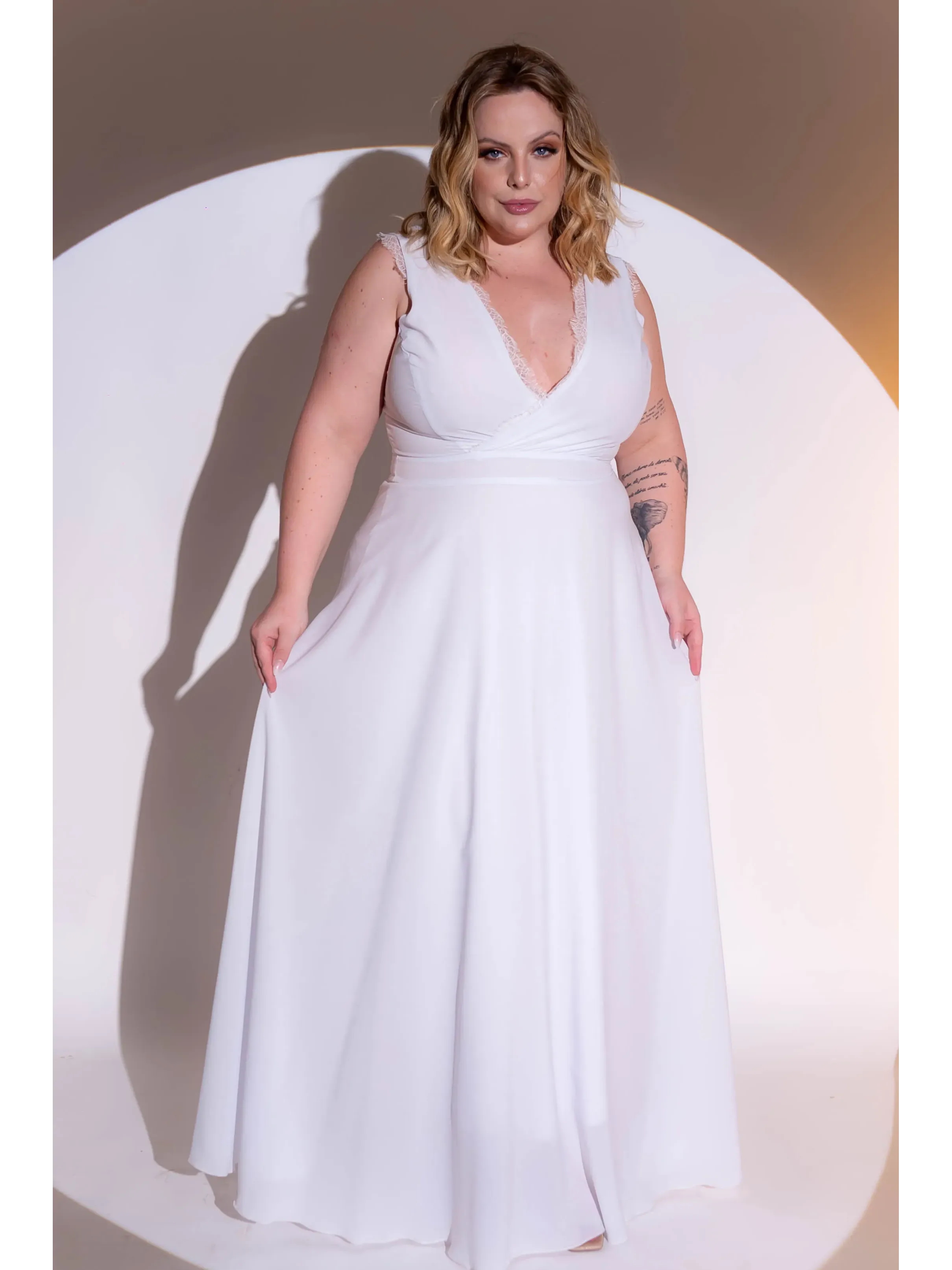 Vestido de noiva longo branco alça com renda e saia fluida
